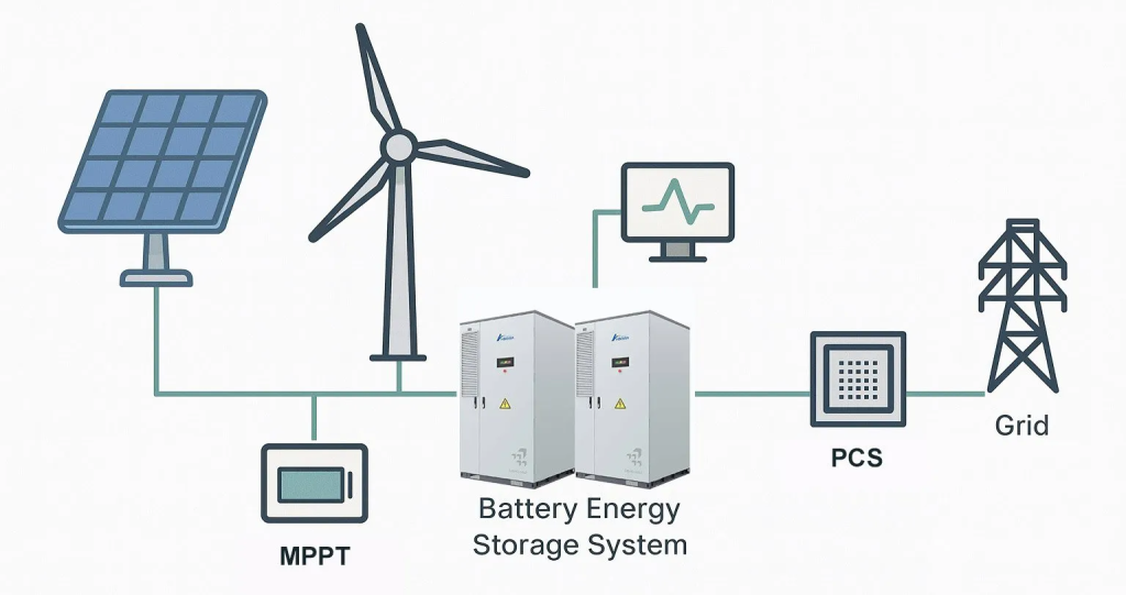 The microgrid system is custom-designed by integrating clean energy, energy storage systems, the public grid, and generators based on customer needs.